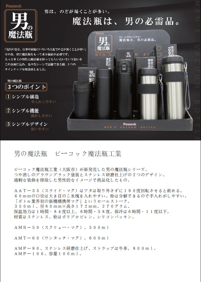 Peacock has introduced a new product line- Vacuum Bottles for Men.